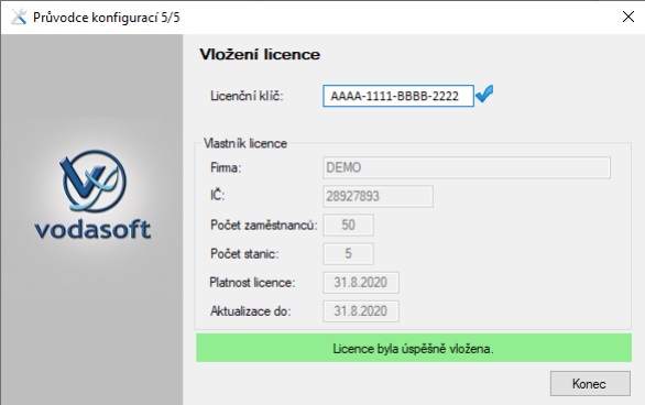 V posledním kroku se vloží licenční klíč k aplikaci.